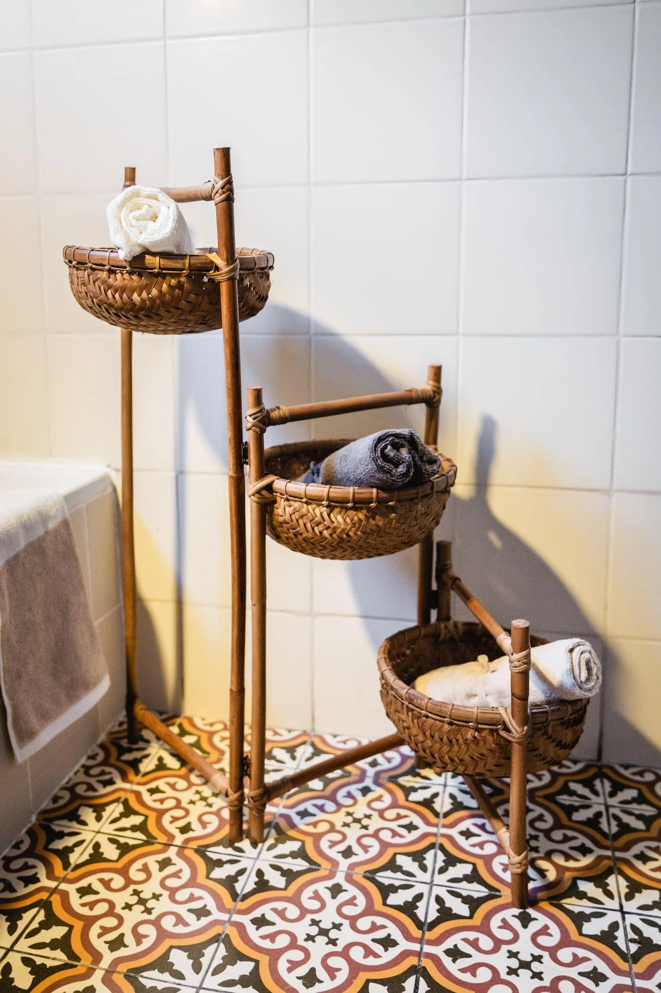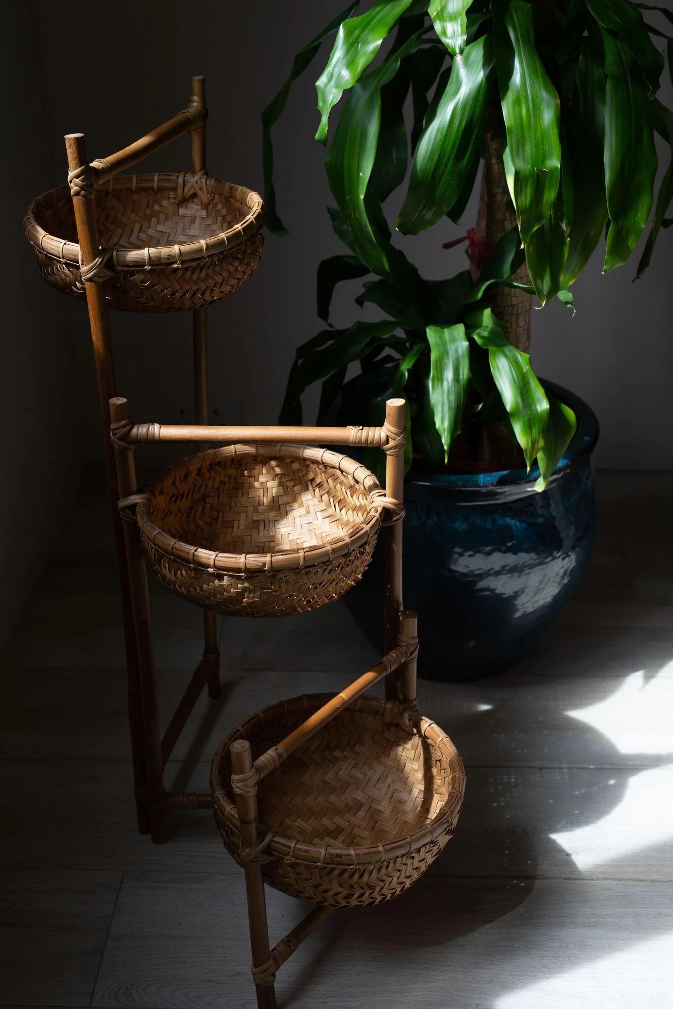 Natural Tiered Basket made of Bamboo.